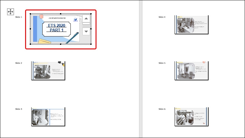 Bước 5: Trong trường hợp này, Word sẽ tự động mở và sao chép dữ liệu từ các slide của PowerPoint. Sau khi quá trình chuyển đổi hoàn tất, bạn chỉ cần nhấp chuột vào các slide để tiến hành chỉnh sửa nội dung văn bản, hình ảnh, và thậm chí phóng to hoặc thu nhỏ slide theo mong muốn của bạn.