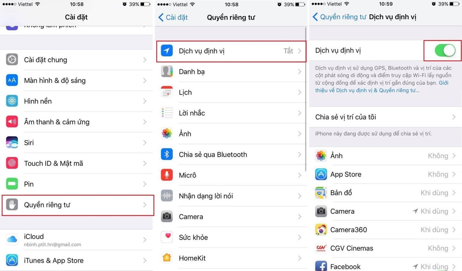 Để bật chế độ này, bạn truy cập vào mục Cài đặt > Quyền riêng tư> sau đó nhân vào Dịch vụ định vị rồi bật nó lên như thông thường. Tại đây, bạn sẽ thấy một danh sách ứng dụng yêu cầu truy cập vị trí. Nếu muốn tiết kiệm pin và dữ liệu mạng thì bạn có thể chỉ kích hoạt dịch vụ này cho một số ứng dụng thực sự cần thiết, phần còn lại thì có thể tắt hết đi.
