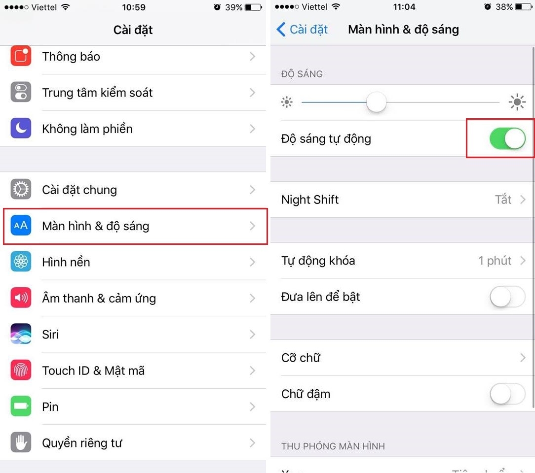 Việc làm tưởng chừng như đơn giản này lại có ảnh hưởng khá lớn đến thời lượng sử dụng pin trên chiếc iPhone của bạn. Và để hạn chế sự hao hụt không cần thiết bị, bạn nên vào Cài đặt > Màn hình & độ sáng và kích hoạt chế độ Độ sáng tự động.