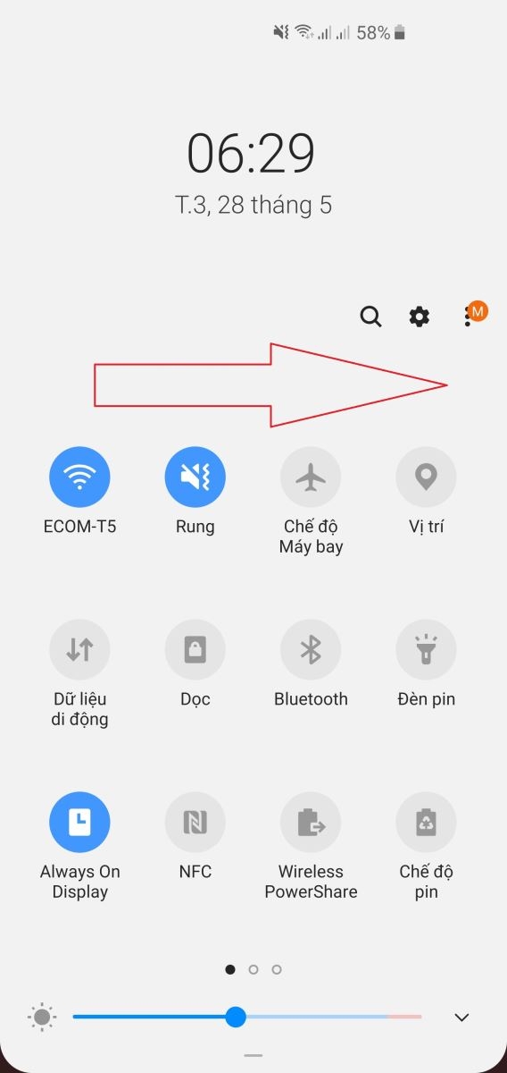 Bước 1: Mở bảng điều khiển bằng cách vuốt hai lần từ mép trên màn hình xuống.