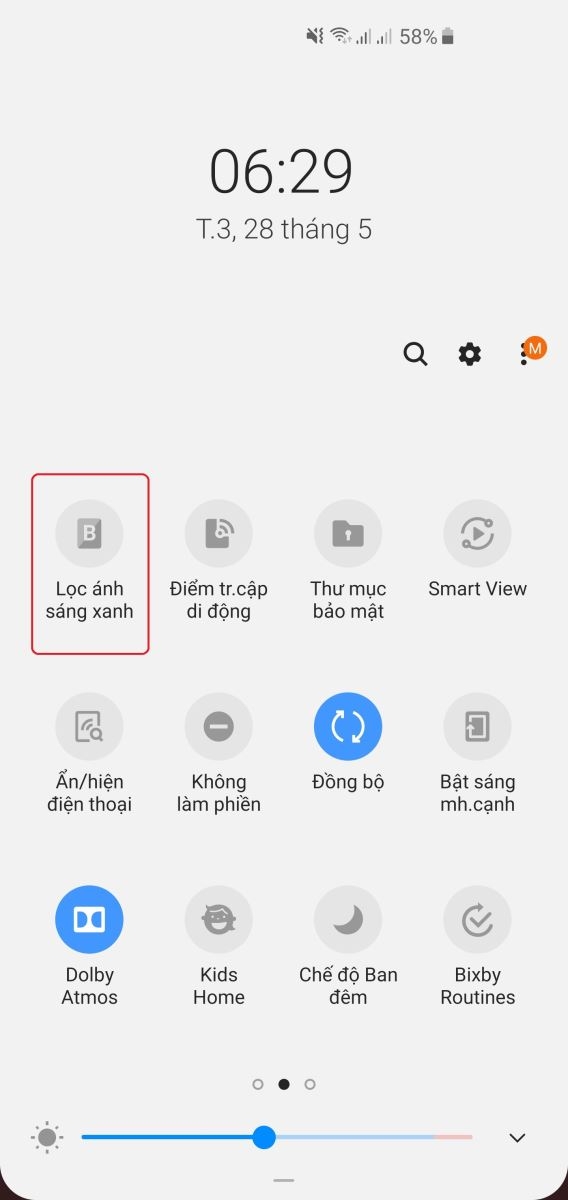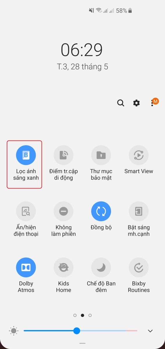 Bước 3: Chạm vào biểu tượng Lọc ánh sáng xanh.
