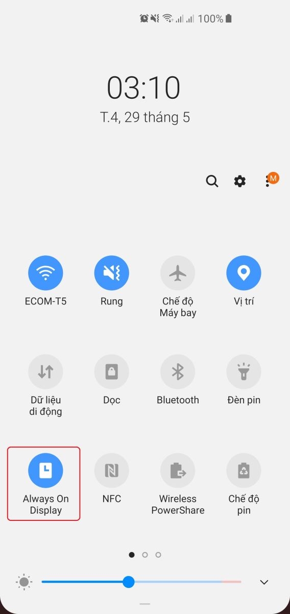 Để mở lại nhanh Always On, bạn làm tương tự như trên. Nếu biểu tượng Always On sáng lên nghĩa là bạn đã bật Always On thành công.