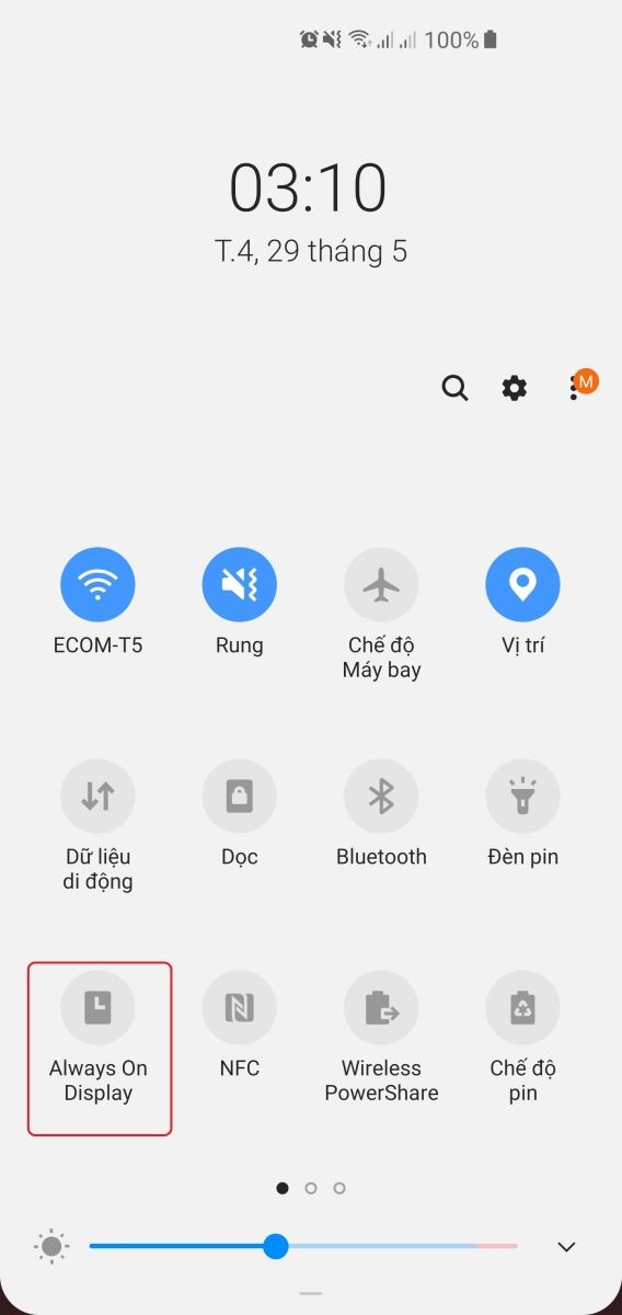 Màn hình Always On rất đẹp nhưng lại hơi tốn pin. Nếu Samsung Galaxy A50 pin sắp hết, bạn có thể tắt nhanh Always On như sau: