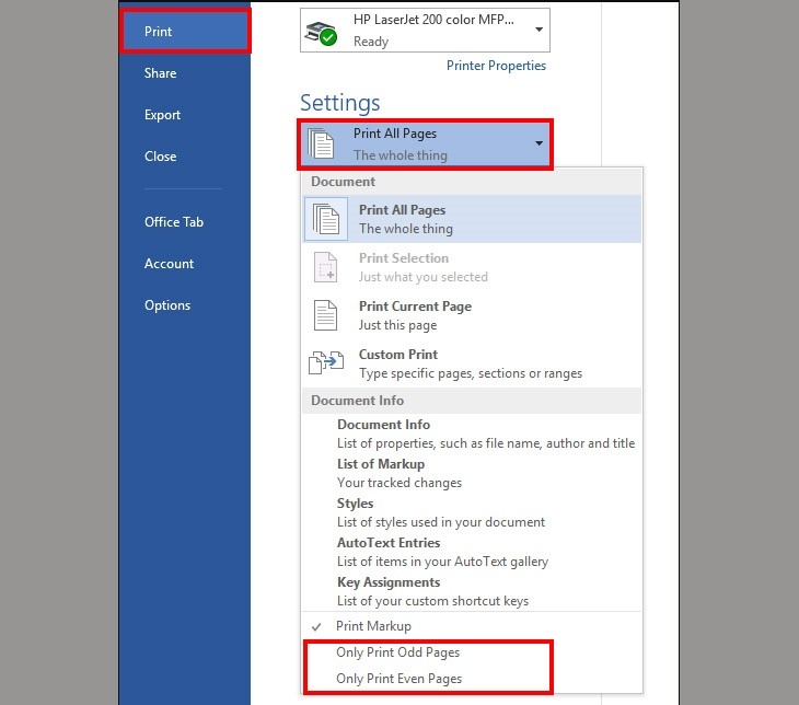 Cách in 2 mặt trong Word thông qua phương pháp thủ công