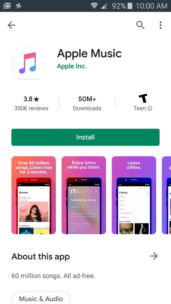 - Tải ứng dụng Apple Music từ Google Play.
