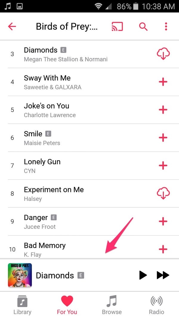 - Trong lúc nhạc đang mở, hãy bấm vào tên bài hát – podcast – kênh radio ở phía dưới màn hình.