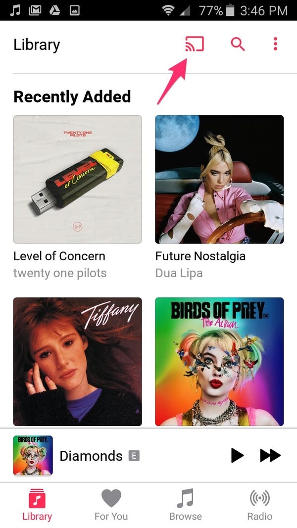 - Bạn cũng có thể cast thiết bị của mình mà không cần chơi nhạc bằng cách bấm vào biểu tượng Cast ở phía trên màn hình.