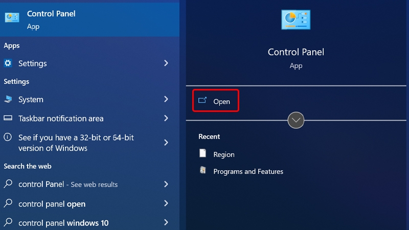 Bước 1: Click chuột vào biểu tượng Windows → Tìm và mở Control Panel.