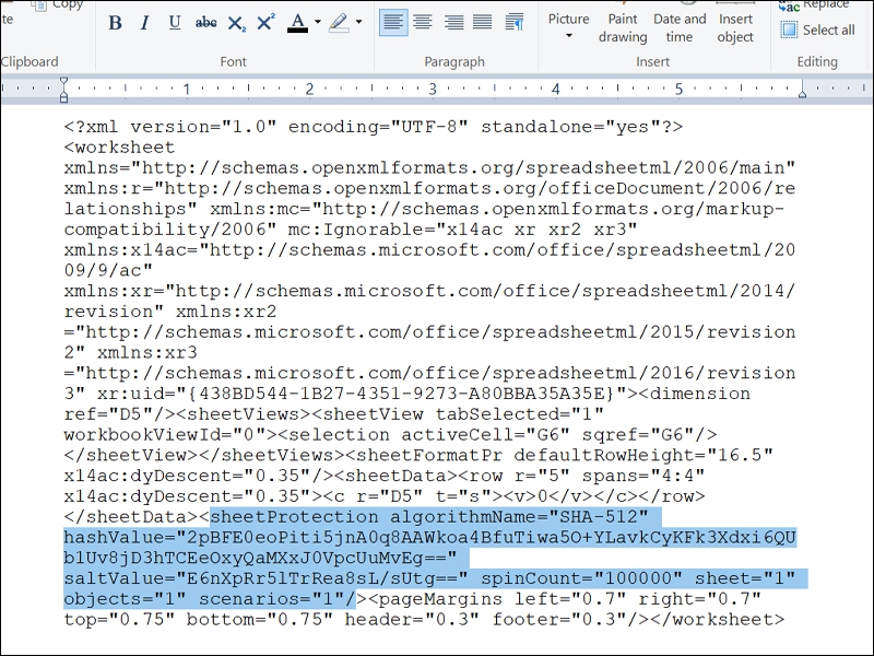 Bước 10: Tiến hành xóa toàn bộ dữ liệu ở trong ngoặc nhọn bắt đầu từ sheetProtection.