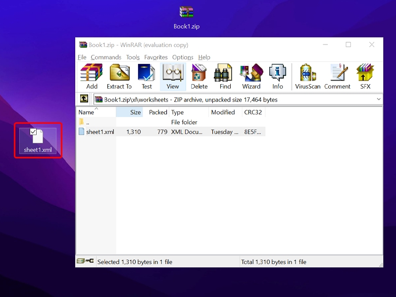 Bước 6: Mở file Zip của bạn và đi đến đường dẫn xl\worksheets.