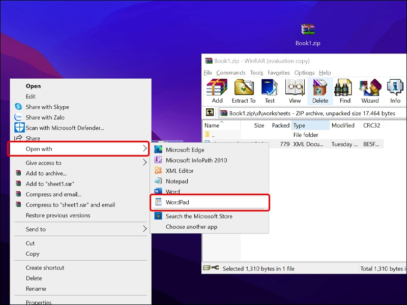Bước 8: Click chuột phải vào tệp → Chọn Open with → Chọn mở bằng WordPad.