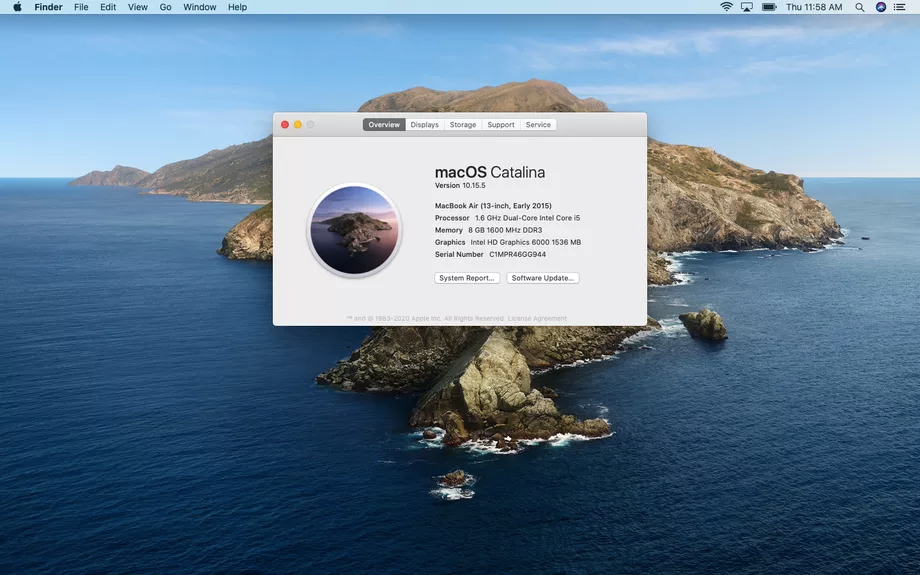 - Click vào mục About This Mac. Bạn sẽ thấy một số thông tin liên quan đến phiên bản của hệ điều hành cùng với các thông tin phần cứng của máy tại đây.