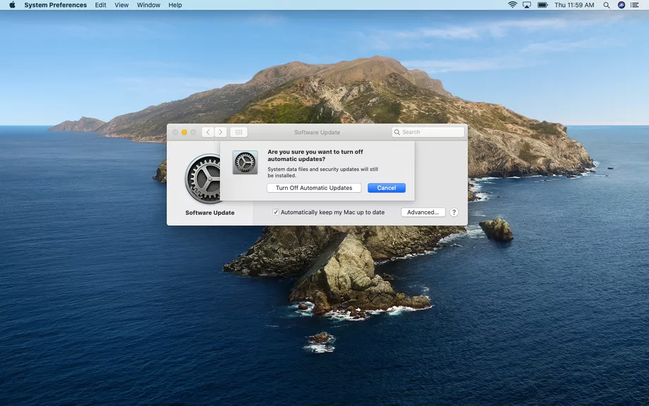 - Ngược với tùy chọn trên, bạn bỏ tick thì máy sẽ không tự động cập nhật nữa. Lúc này sẽ có một cửa sổ hiện ra yêu cầu bạn xác nhận hành động này, hãy nhập mật khẩu của máy Mac khi bạn được yêu cầu.