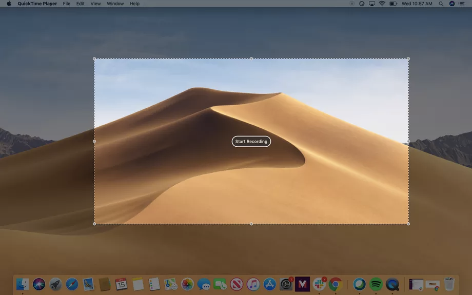 - Nếu muốn quay một phần màn hình, hãy kéo con trỏ chuột để tạo ra một cửa sổ và resize sao cho vừa ý bạn. Cuối cùng, bạn hãy bấm nút Start Recording ở giữa cửa sổ đó.