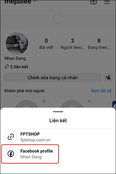 Bước 4: Nếu như bạn chọn vào Thêm liên kết đến Facebook → Nhấn vào Thêm liên kết đến trang cá nhân để hoàn tất thay đổi.