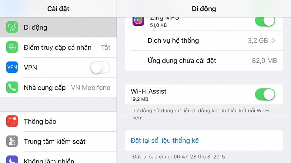 Dù đã đề cập nhiều lần trước đó nhưng chúng tôi vẫn muốn nhắc nhở bạn một lần nữa về tính năng tự động chuyển sang mạng 3G khi Wi-Fi quá yếu này. Theo đó, nó sẽ gúp bạn có được một trải nghiệm internet mượt mà hơn nhưng bù lại, dung lượng 3G sẽ bị tụt giảm một cách nhanh chóng. Nếu bạn thấy hữu ích thì có thể để lại còn không thì hãy tắt Wi-Fi Assist đi để tiết kiệm hơn nhé.
