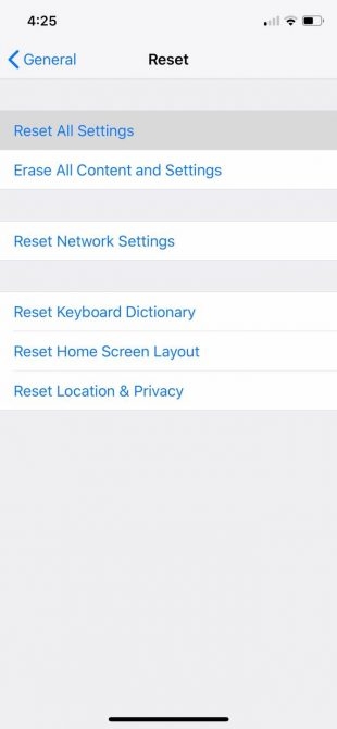 Truy cập theo đường dẫn Settings -> General -> Reset. Bấm vào Reset All Settings và nhập mật khẩu khóa iPhone vào đây. Hãy làm theo các hướng dẫn trên màn hình suốt quá trình này.