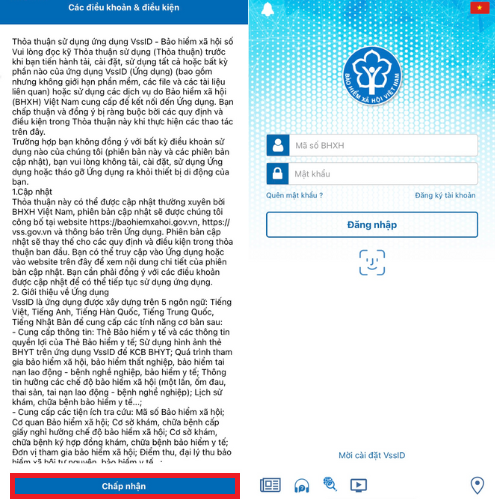 Bước 3: Bạn tiến hành đọc Các điều khoản và điều kiện của VssID cung cấp, nếu không còn gì thắc mắc thì chọn Chấp nhận. Như vậy là bạn đã tải thành công ứng dụng rồi.