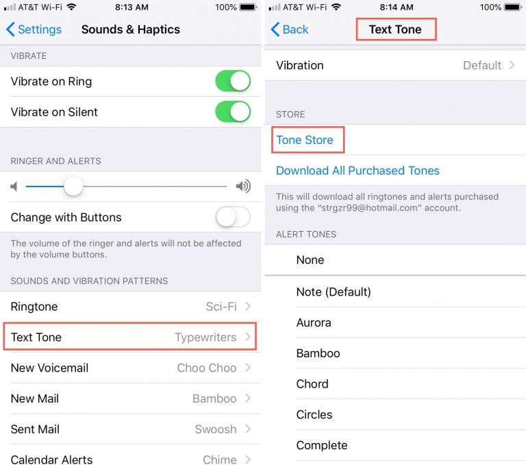 Trong mục Sounds & Haptics, bạn cũng có thể thay đổi âm thanh gõ tin nhắn nữa. Tương tự như trên, Tone Store là nơi bạn có thể lựa chọn những đoạn âm thanh ưa thích chỉ với một số tiền nhỏ.