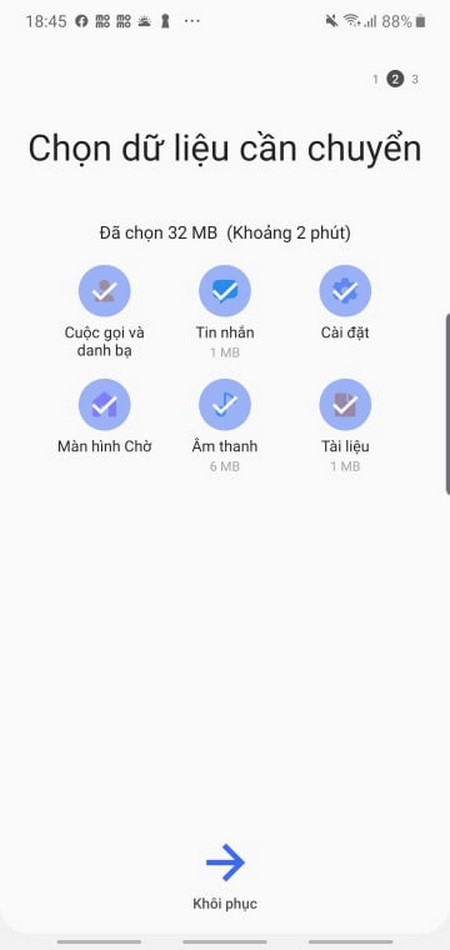 Bước 7: Chọn các mục cần khôi phục từ thẻ nhớ, sau đó bấm Khôi phục lần nữa để bắt đầu chép dữ liệu từ thẻ nhớ vào Samsung Galaxy Note 10+.