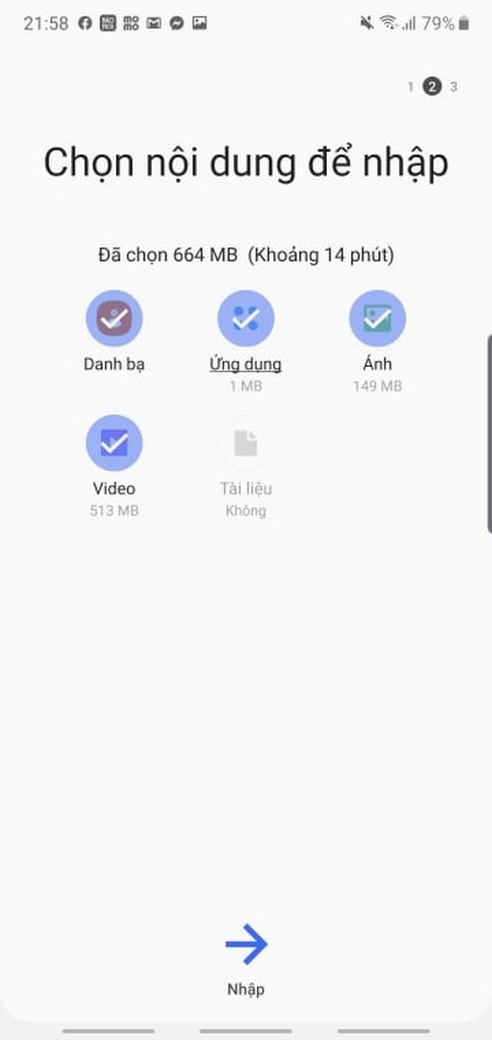 Bước 4: Chọn các dữ liệu cần chép vào Note 10, sau đó bấm Nhập.