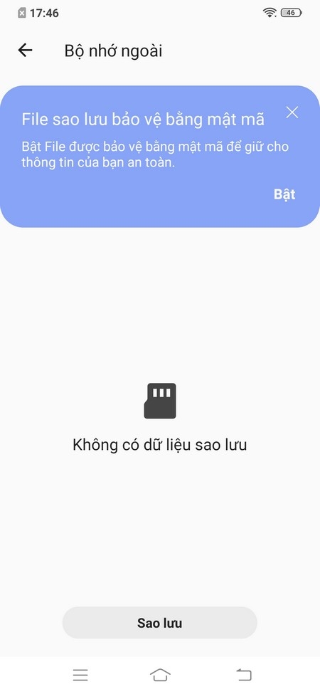 Bước 3: Chọn các dữ liệu muốn sao lưu từ điện thoại cũ lên thẻ nhớ, sau đó bấm Sao lưu.