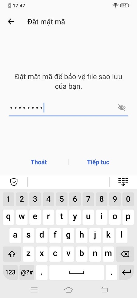 Bước 4: Nhập vào mật khẩu bảo vệ (nếu bạn muốn bảo vệ dữ liệu của mình).