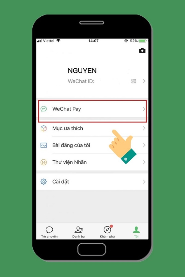 Bước 2: Truy cập mục Tôi => Chọn mục WeChat Pay.