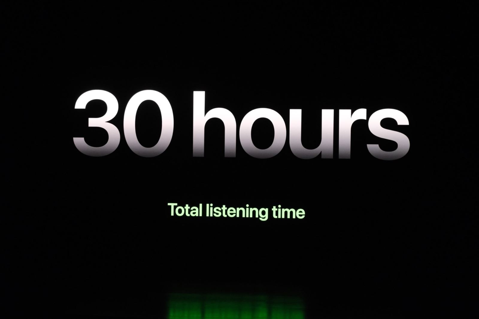 Thời lượng pin là nâng cấp tiếp theo mà Apple mang đến cho AirPods Pro 2, chỉ với một lần sạc người dùng có thể nghe liên tục 6 tiếng tâng 33% so với thế hệ cũ và hộp sạc cung cấp đến 30 giờ sử dụng, tăng thêm 6 giờ. Ngoài sạc dây thì AirPods Pro 2 vẫn có sạc không dây chuẩn Qi.