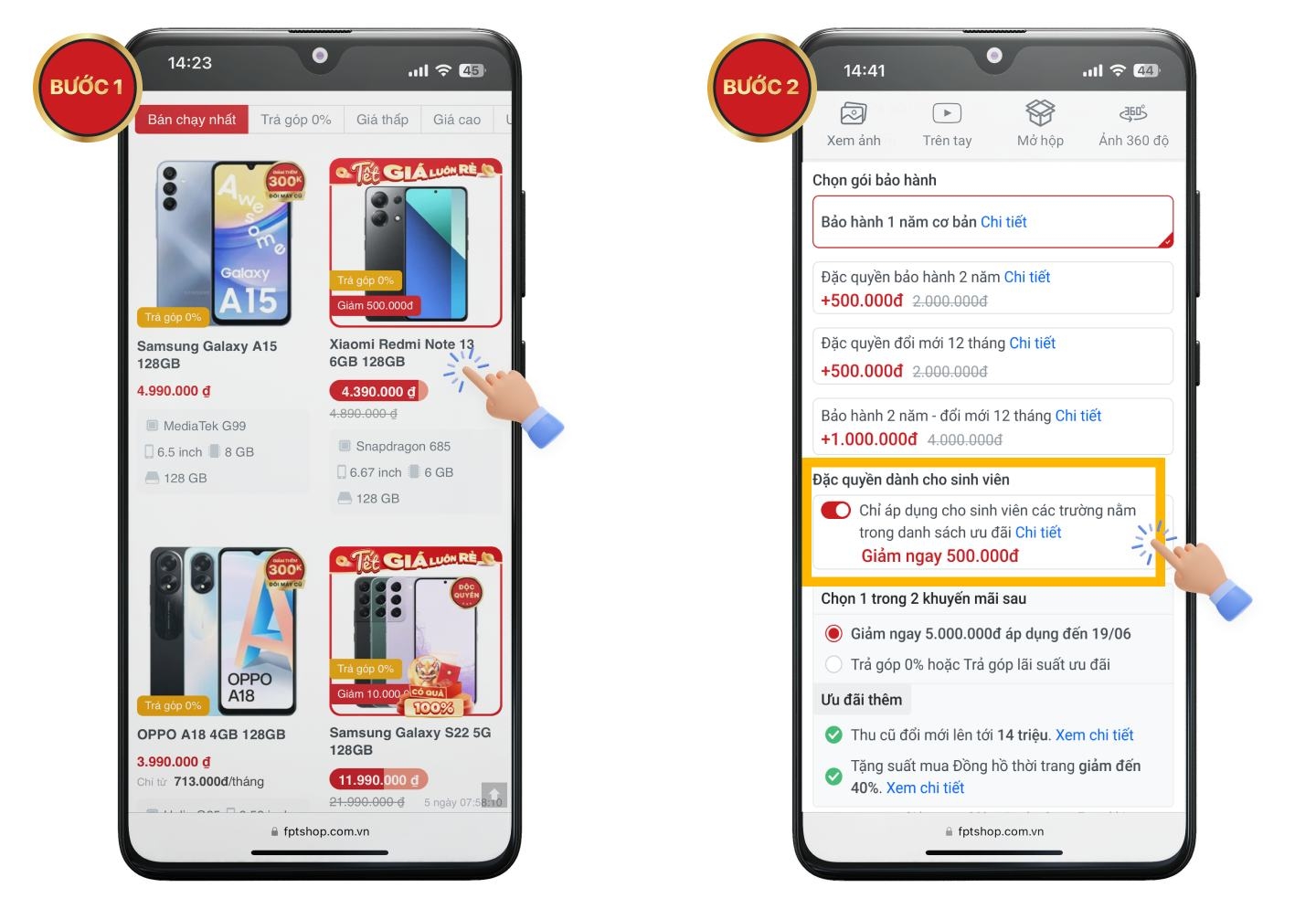 Bước 2: Tại trang Chi tiết sản phẩm, bật chọn khuyến mãi “Đặc quyền dành cho sinh viên”.