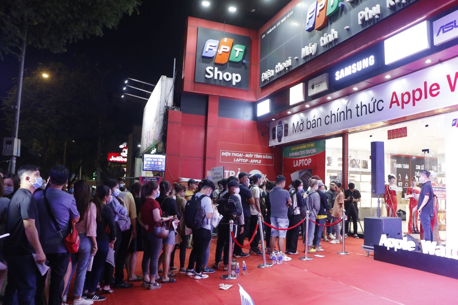 Vào lúc 20h hôm nay, Apple Watch Series 6 và SE chính hãng đã chính thức lên kệ tại FPT Shop. Với sức nóng của ưu đãi “Mua 1 tặng 1” và giảm 50% từ FPT Shop, nhiều khách hàng đã đến xếp hàng nhận ưu đãi từ 1 - 2 giờ sáng. Tính đến hiện tại, hơn 500 sản phẩm ‘hết veo’ chỉ sau 30 phút mở bán tại 2 điểm sự kiện.
