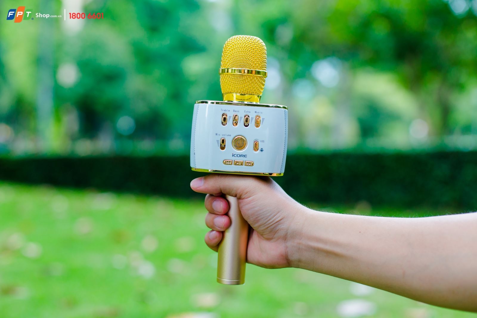 - Micro Karaoke iCore M9: đang là sản phẩm “gây bão” tại FPT Shop không chỉ bởi tính tiện dụng, thiết kế đẹp mắt, âm thanh chất lượng mà còn bởi sự an toàn của mình. Là sản phẩm chính hãng đến từ Arirang Tech Corp HK Ltd - một thương hiệu nổi tiếng chuyên về đầu máy hát, loa, karaoke…, sản phẩm luôn được đảm bảo chất lượng và an toàn cho người sử dụng. iCore M9 được làm bằng chất liệu nhựa ABS cứng cáp, chắc chắn, đầu mic được thiết kế với dạng lưới cổ điển bằng hợp kim cao cấp rất thời trang và sang trọng. Đặc biệt, không chỉ là micro hát karaoke, sản phẩm này còn là loa bluetoot cũng như “biến hóa” thành sạc dự phòng lúc cần thiết. Sản phẩm hiện có giá niêm yết là 899.000 đồng, riêng trong tháng 9, iCore M9 giảm giá 200.000 đồng, giá chỉ còn 699.000 đồng.