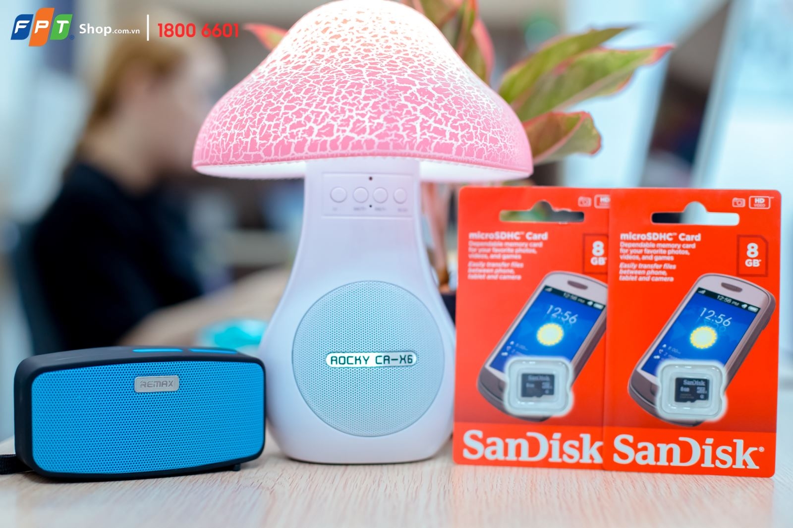Là một trong những sản phẩm được yêu thích nhất tại FPT Shop, loa bluetooth hình nấm Rocky và Remax RM-M1 chinh phục khách hàng không chỉ bởi thiết kế nhỏ gọn, đáng yêu, dễ dàng khi di chuyển mà còn bởi âm thanh chất lượng, phủ rộng không gian với bán kính 10 mét. Đặc biệt, loa Rocky bên cạnh thiết kế hình nấm siêu đáng yêu thì còn có chức năng như một chiếc đèn ngủ ấm áp vô cùng tiện lợi.
