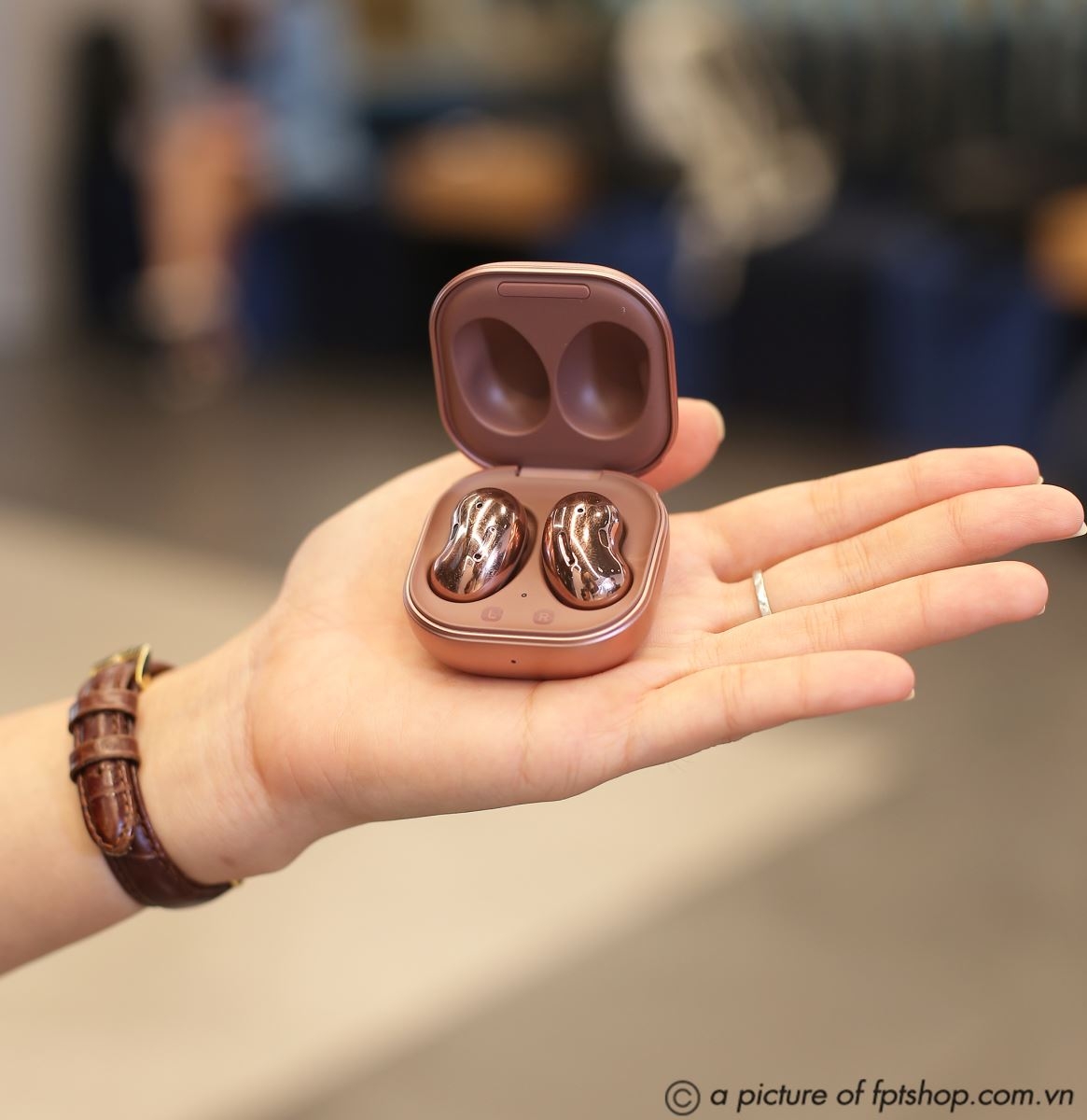 Một trong những quà tặng thiết thực mà khách hàng nhận được khi chọn mua sớm Galaxy S21 FE tại FPT Shop là tai nghe Galaxy Buds Live. Galaxy Buds Live có thiết kế độc đáo, nhỏ gọn với hình dáng như hạt đậu. Các tính năng hàng đầu của tai nghe đều được tích hợp trên Samsung Galaxy Buds Live, bao gồm hộc sạc không dây chuẩn Qi, tính năng chống ồn chủ động (ANC) và các cử chỉ chạm rất tiện lợi. Chất lượng âm thanh trên Galaxy Buds Live được tinh chỉnh bởi hãng AKG danh tiếng, mang đến âm thanh sâu lắng, sống động và chi tiết. Chất lượng đàm thoại trên Buds Live cũng rất xuất sắc nhờ hệ thống 3 micro và bộ thu nhận giọng nói.