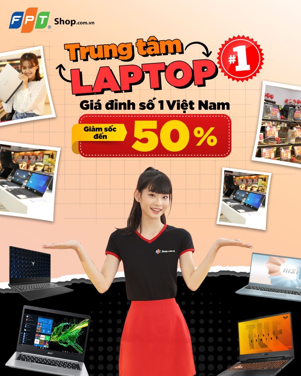 Từ ngày 01 - 30/06, FPT Shop giảm giá đến 50%++ cho khách hàng mua laptop tại hơn 150 Trung tâm Laptop.