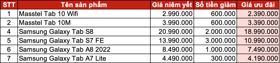 - Máy tính bảng giảm đến 3.000.000 đồng