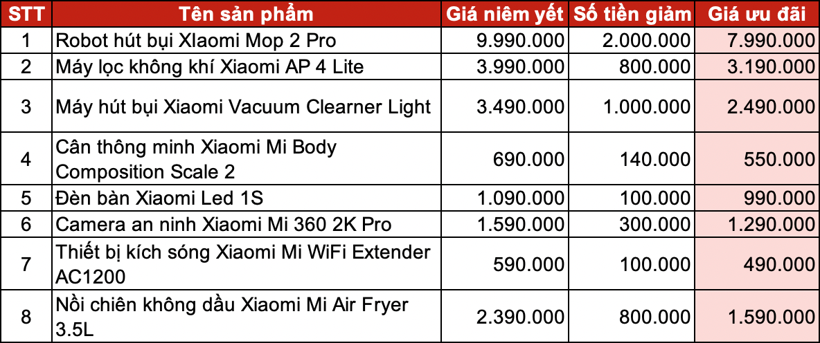 - Hệ sinh thái Xiaomi giảm đến 30%++