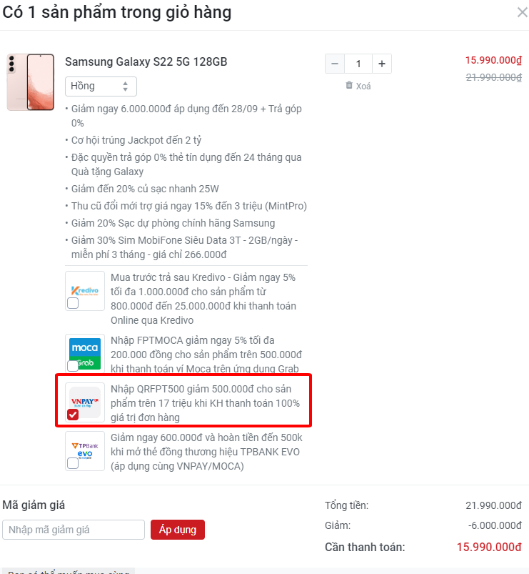 Bước 4: Nhập mã ưu đãi QRFPT500
