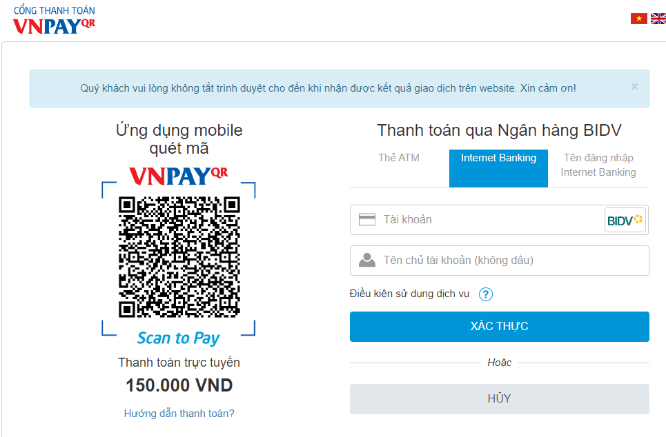 Bước 3: Quét mã VNPAY-QR hiển thị trên màn hình
