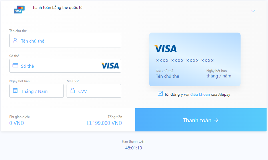 Bước 5: Điền thông tin thẻ và chọn “Thanh toán” để hoàn tất giao dịch