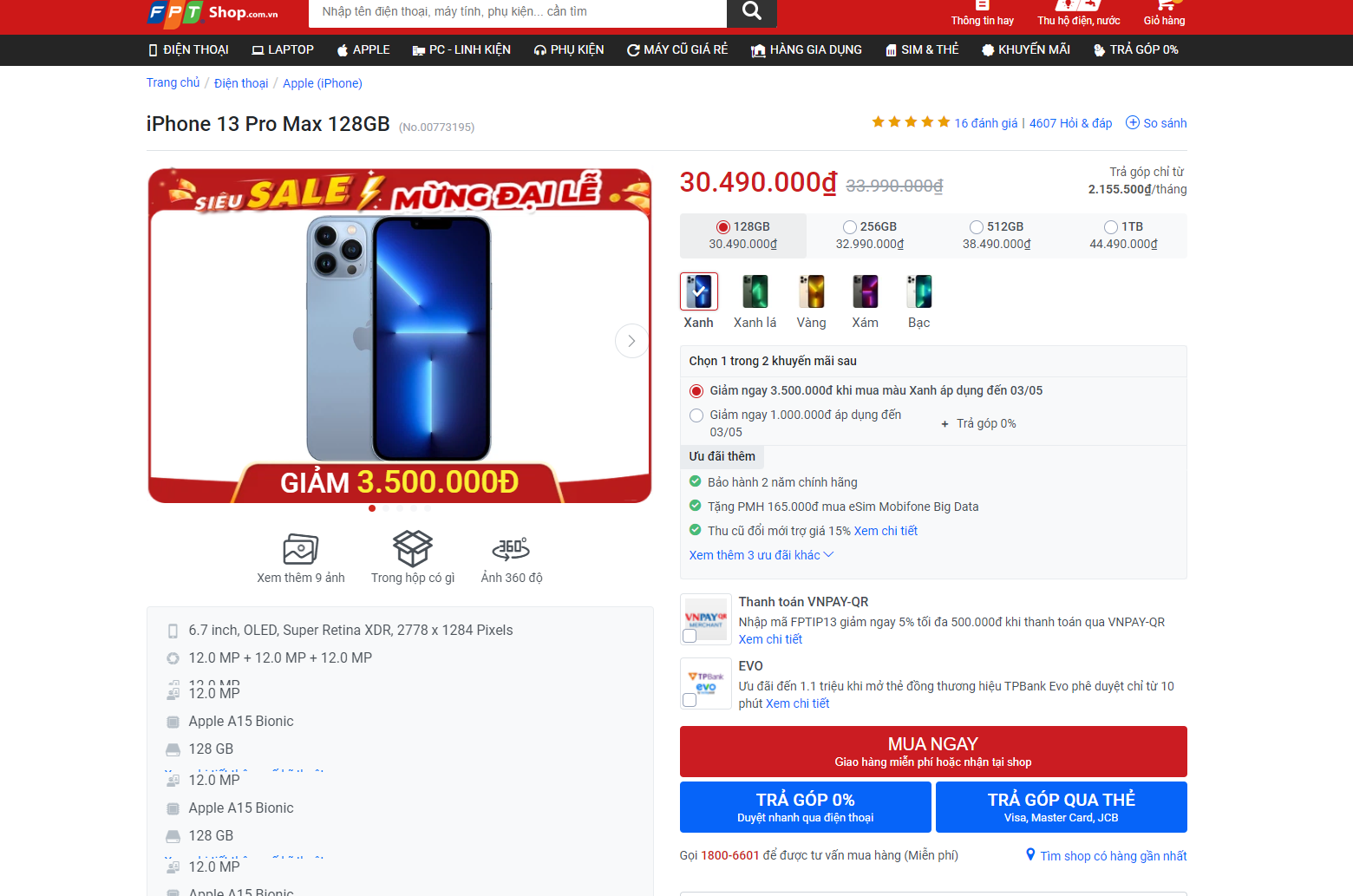 - Phạm vi áp dụng: Áp dụng cho 300 khách hàng đầu tiên chọn mua sản phẩm Apple trên website FPT Shop và chọn thanh toán trả góp 0% qua thẻ Techcombank
