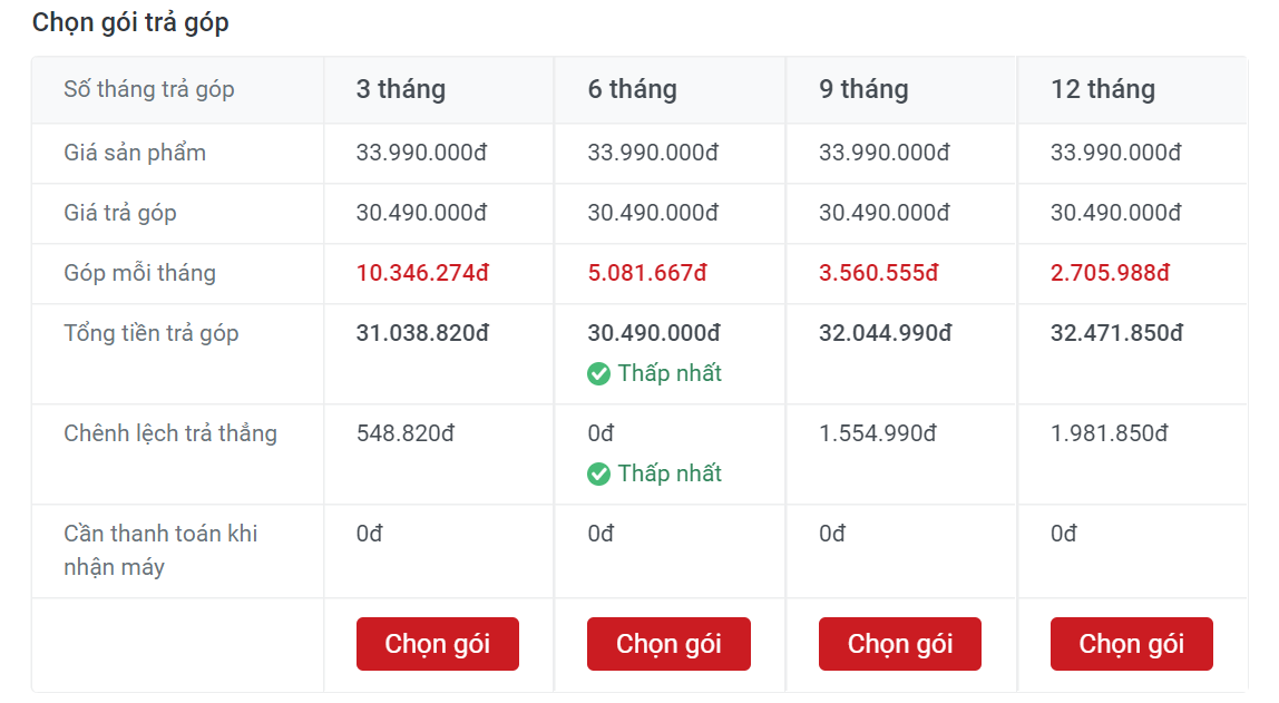 - Chương trình áp dụng cho hình thức trả góp