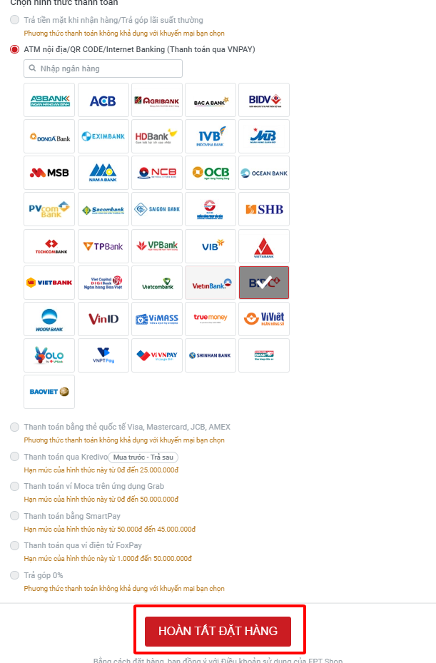 Bước 4: Chọn phương thức thanh toán phù hợp