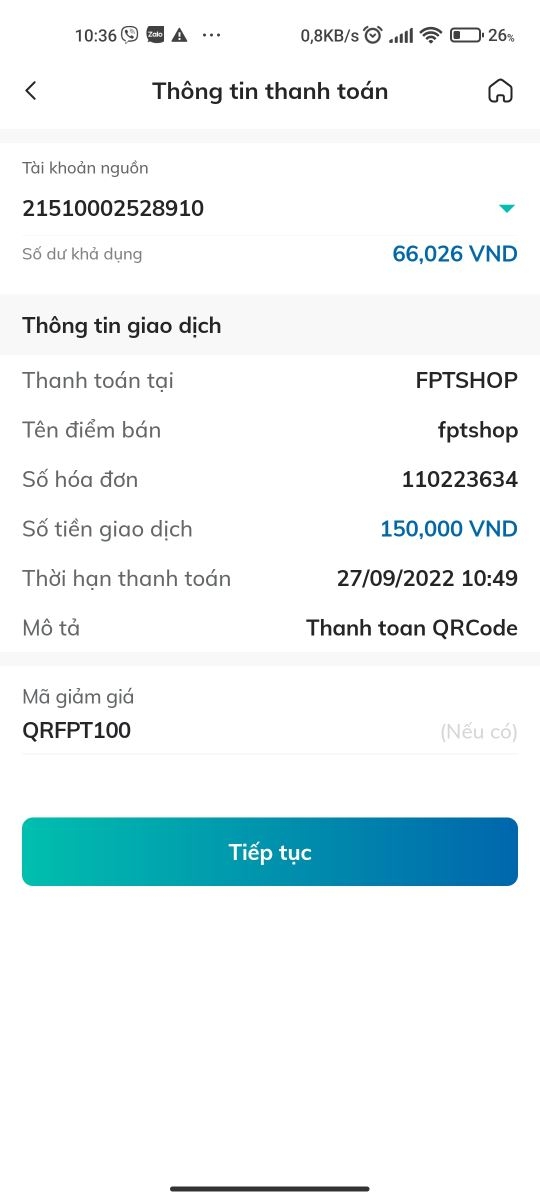 Bước 5: Nhập mã ưu đãi: Ví dụ QRFPT100