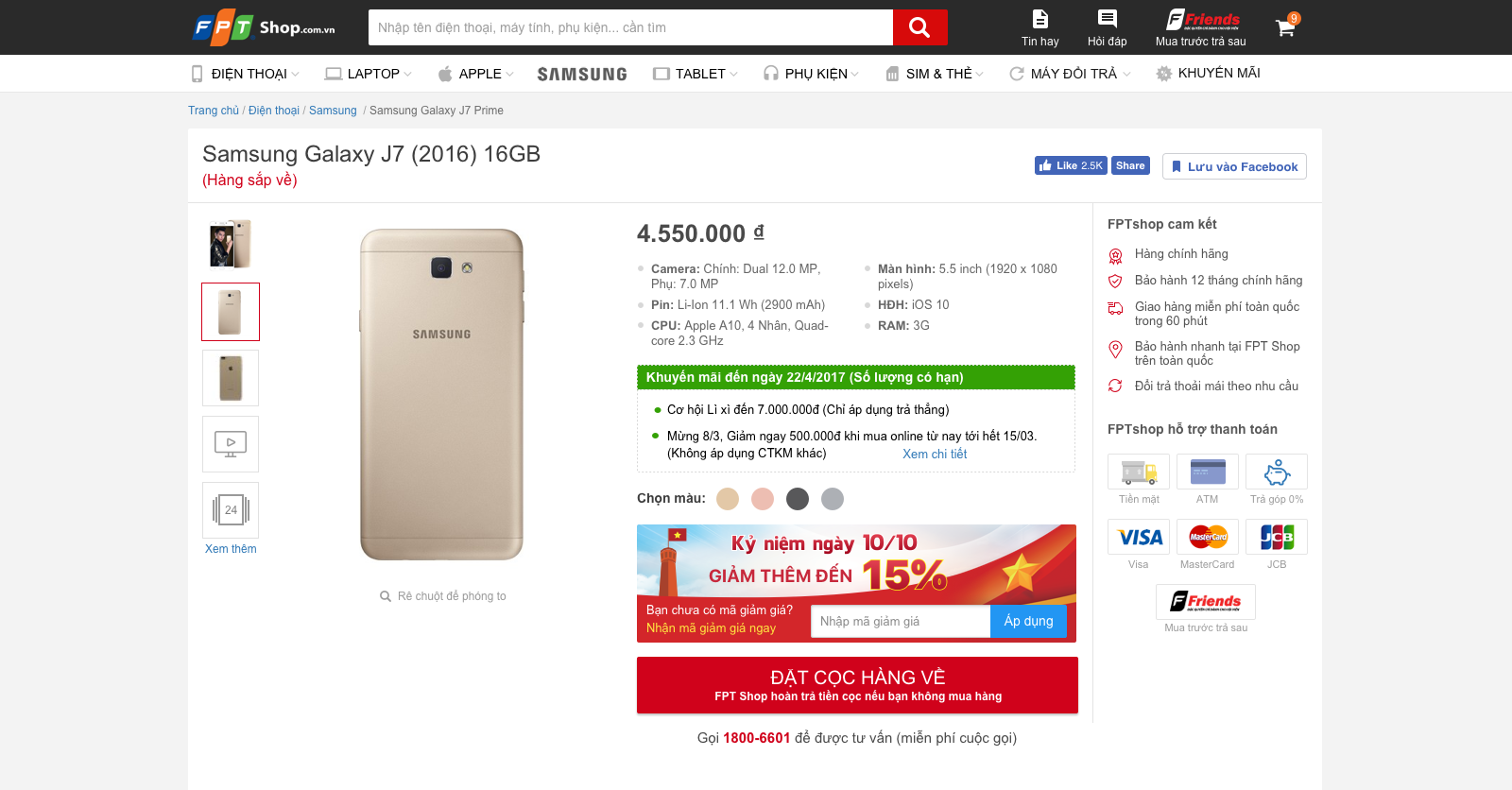 Từ ngày 8 - 11/10, mua online tất cả các sản phẩm điện thoại, laptop, máy tính bảng, Apple... bạn có cơ hội được giảm đến 15%