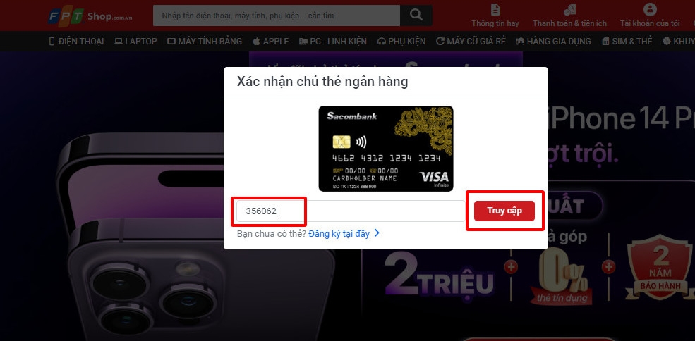 Bước 1: Truy cập trang https://fptshop.com.vn/ctkm/iphone14-sacombank