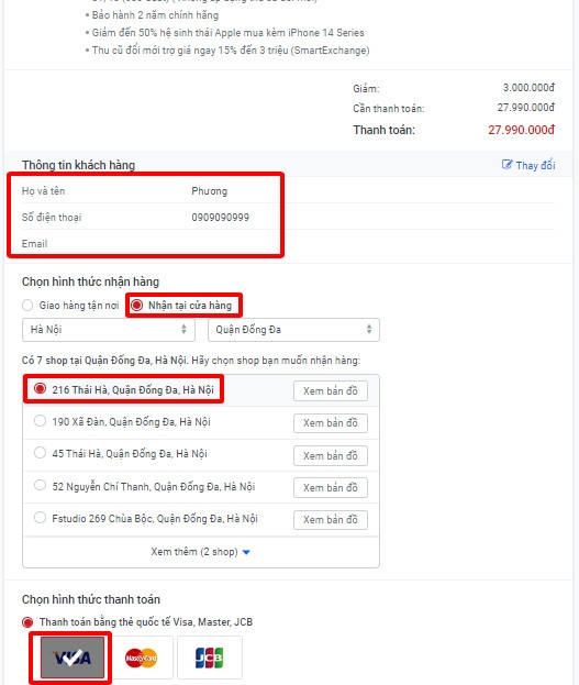 Bước 4: Điền thông tin Khách hàng và chọn hình thức nhận hàng và loại thẻ