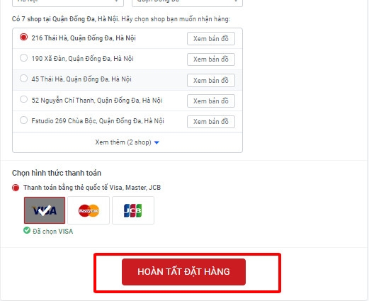 Bước 5: Bấm nút “Hoàn tất đặt hàng”