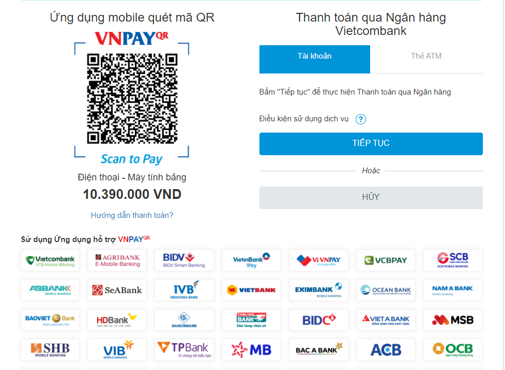 - (Trong một số trường hợp đã làm theo hai mục trên nhưng vẫn lỗi, bạn thử sử dụng máy tính hoặc dùng điện thoại khác để thanh toán)