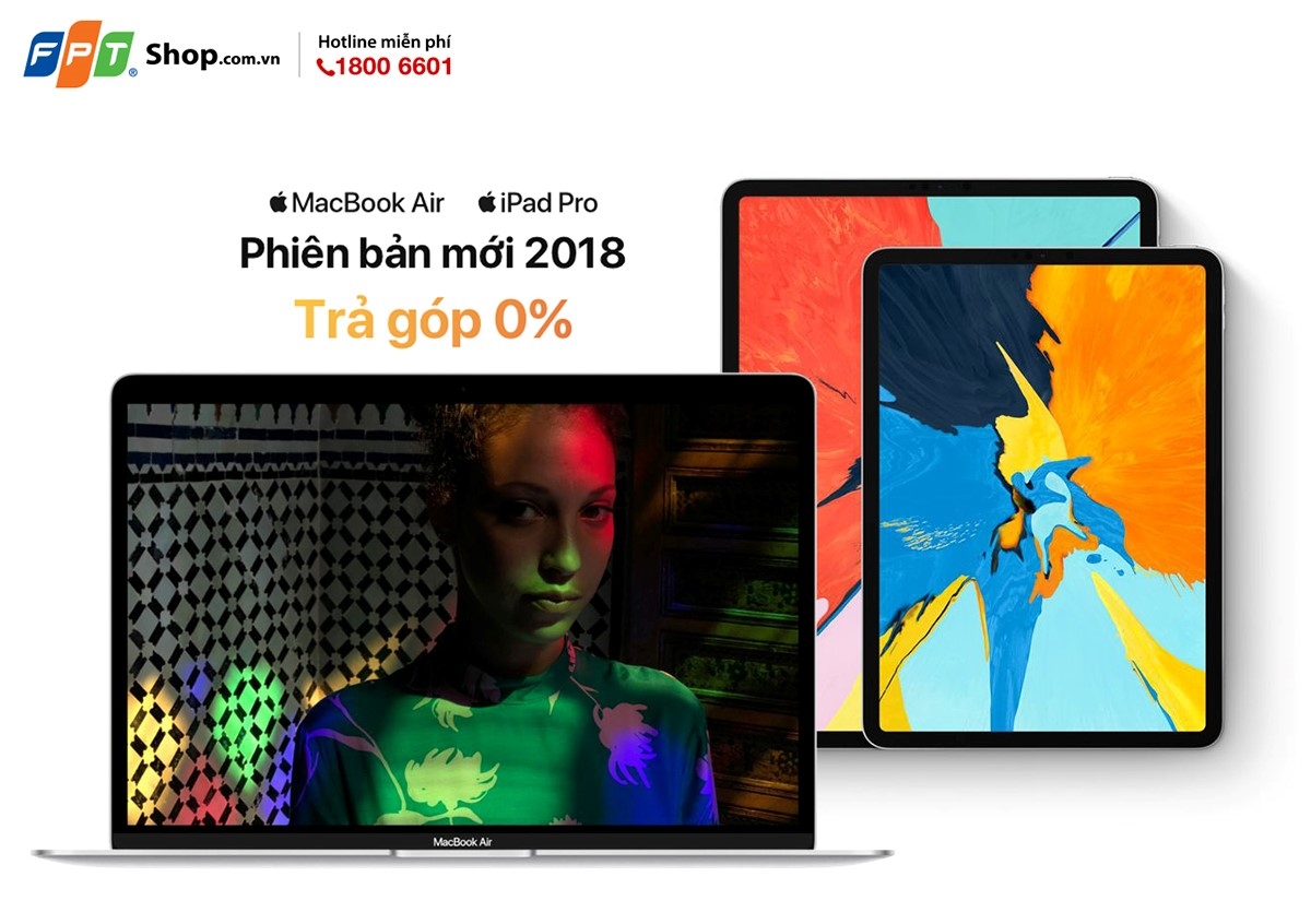 Với nhiều cải tiến trong cấu hình lẫn thiết kế, iPad Pro 11”, 12.9” và Macbook Air 13.3” phiên bản 2018 đang là 3 trong số những cái tên “nóng” nhất làng công nghệ hiện nay. Không làm người hâm mộ chờ đợi quá lâu, ngay từ hôm nay bạn đã có thể đặt trước tại hệ thống FPT Shop và F.Studio để sở hữu sản phẩm chính hãng sớm nhất cũng như nhận thêm ưu đãi trả góp 0% lãi suất trong suốt 8 tháng.